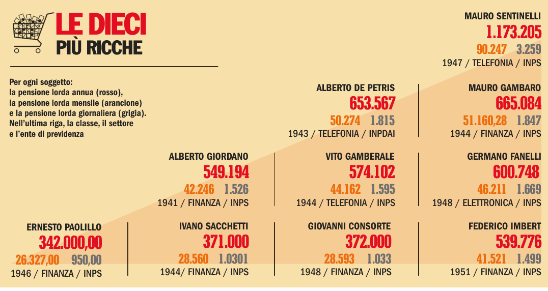 SUPER PENSIONATI DA 90.000 EURO AL MESE: ECCO CHI SONO I PIU' RICCHI D'ITALIA